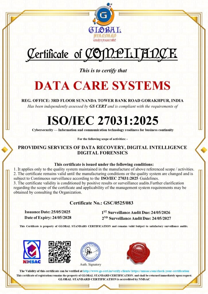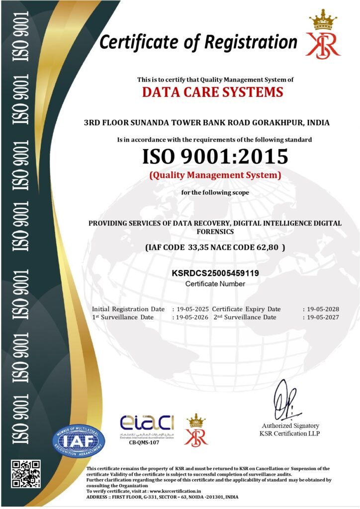 Data Care Systems, established in 2002, is a professionally managed Digital Forensics & Data Recovery Lab based in Gorakhpur, India.